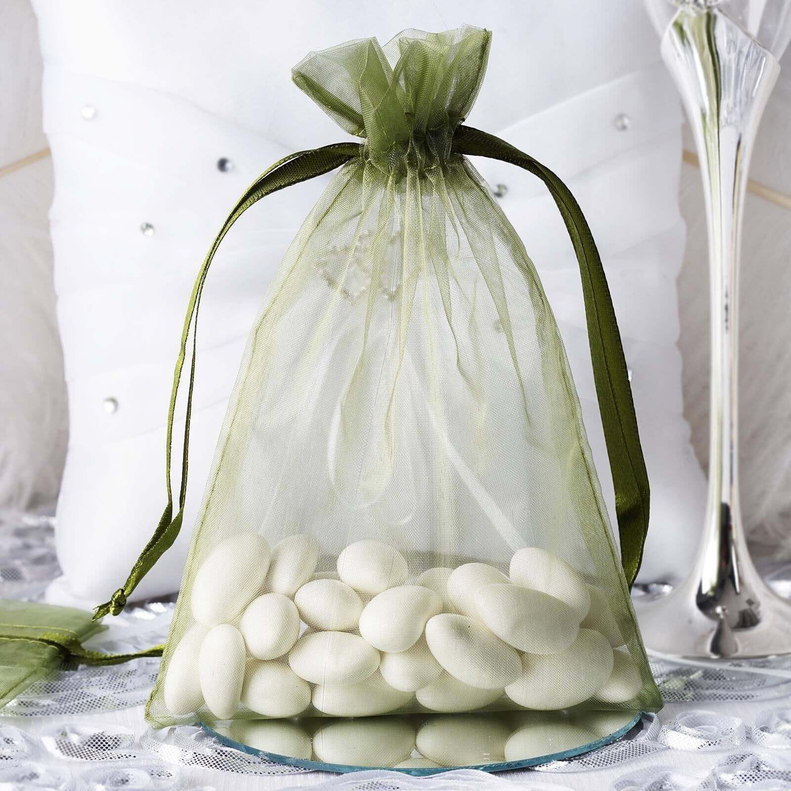 10 Pack 5"x7" Olive Green Organza Drawstring Wedding Party Favor Gift Bags