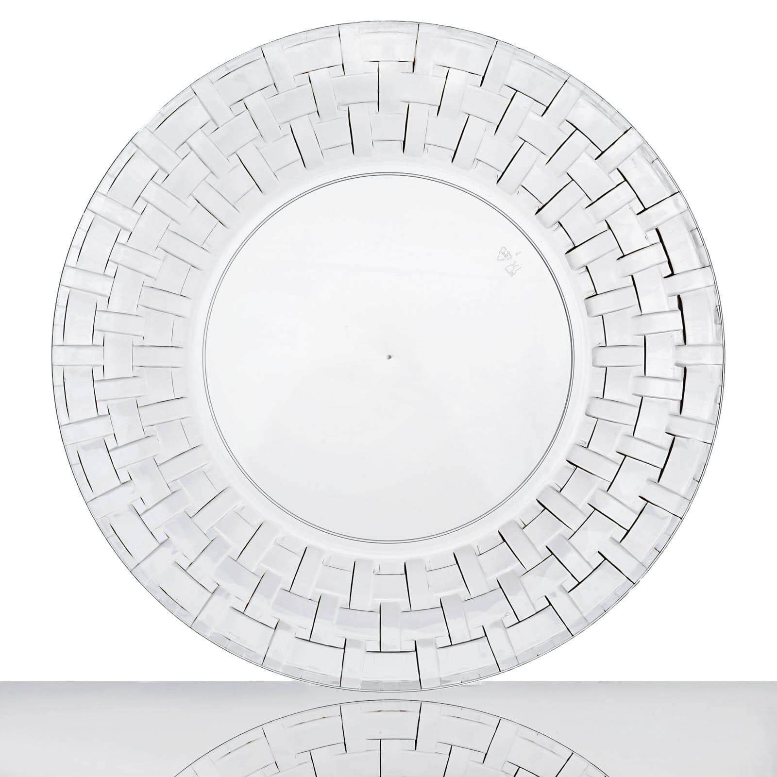 Create an elegant and sophisticated presentation at your upcoming special event or a festive meal with these classy disposable plastic plates. Our astounding collection of Basket weave design plastic plates combines the convenience of plastic with the charismatic appeal of real glass.