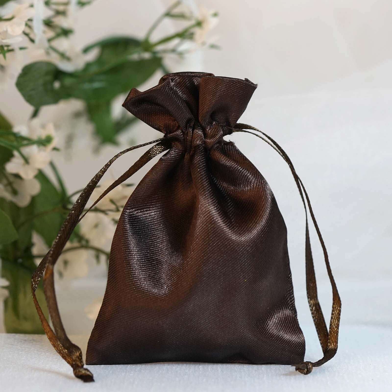 12 Pack 3" Chocolate Satin Drawstring Wedding Party Favor Gift Bags - Clearance SALE