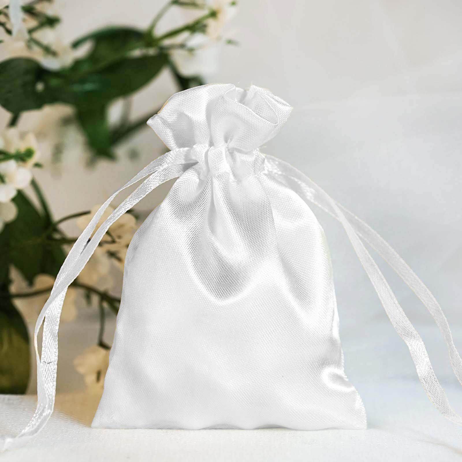 12 Pack 3" White Satin Drawstring Wedding Party Favor Gift Bags