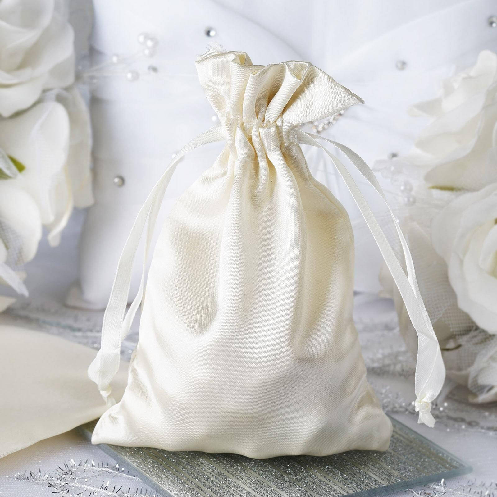 12 Pack 4"x6" Ivory Satin Drawstring Wedding Party Favor Gift Bags