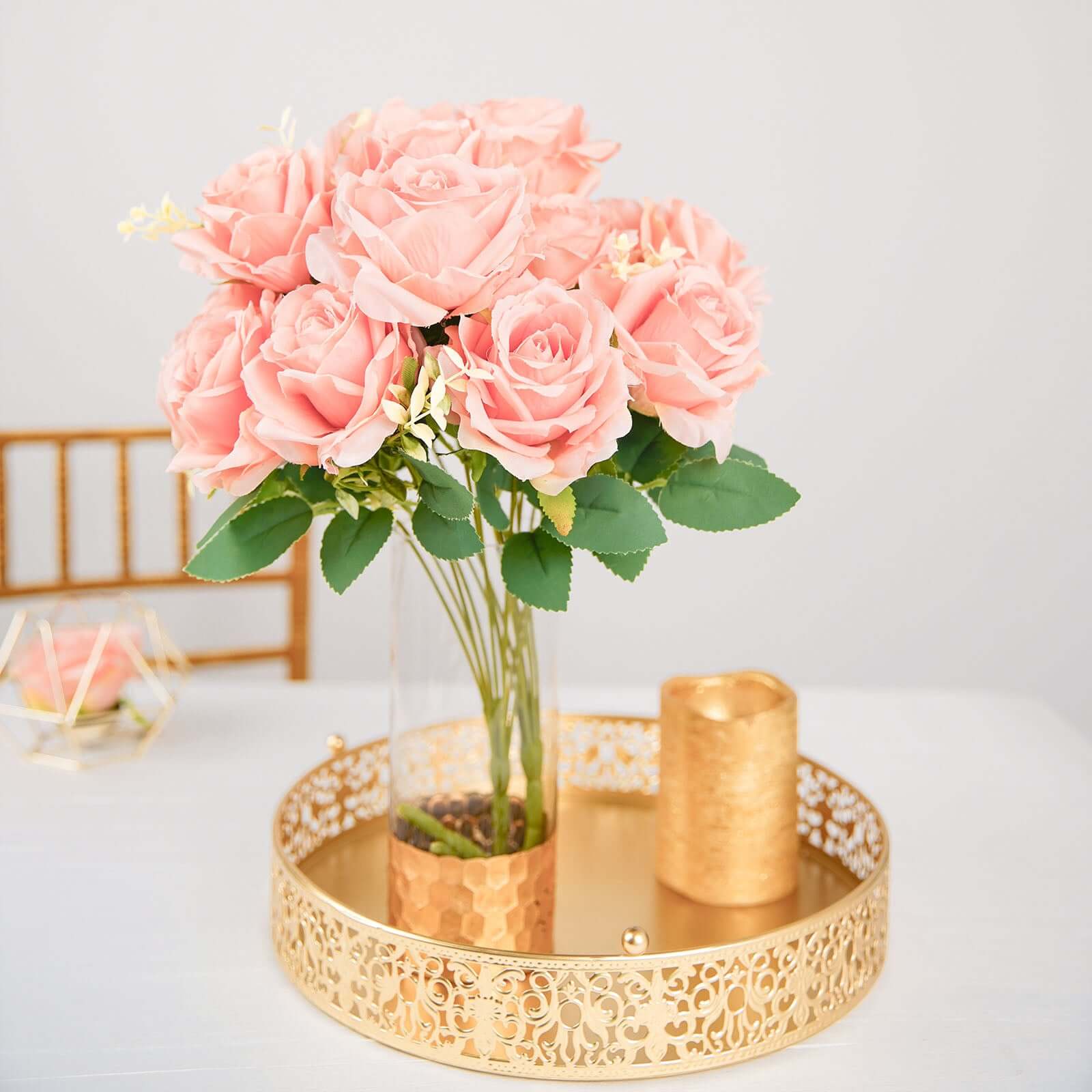2 Bushes 18" Real Touch Blush Artificial Rose Flower Bouquet, Silk Long Stem Flower Arrangements