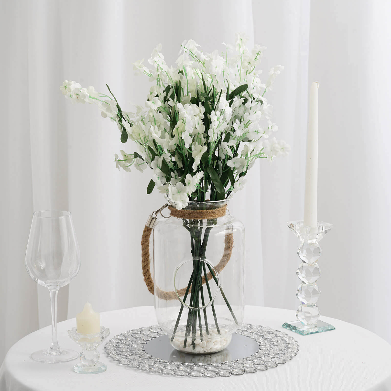 | Quantity: 2 Glass Candle Holders with Removable Twine Handles |