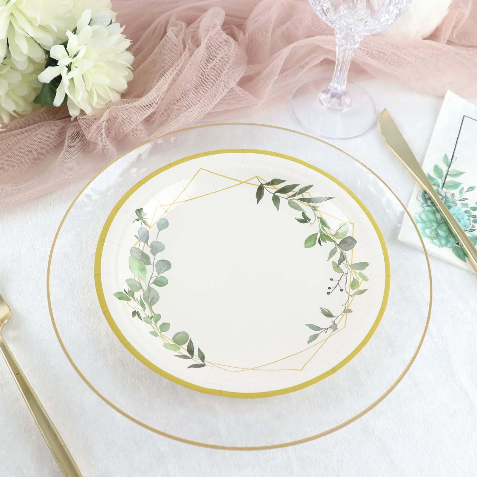 | Style: Geometric Eucalyptus Plant Design w/ Gold Rim |