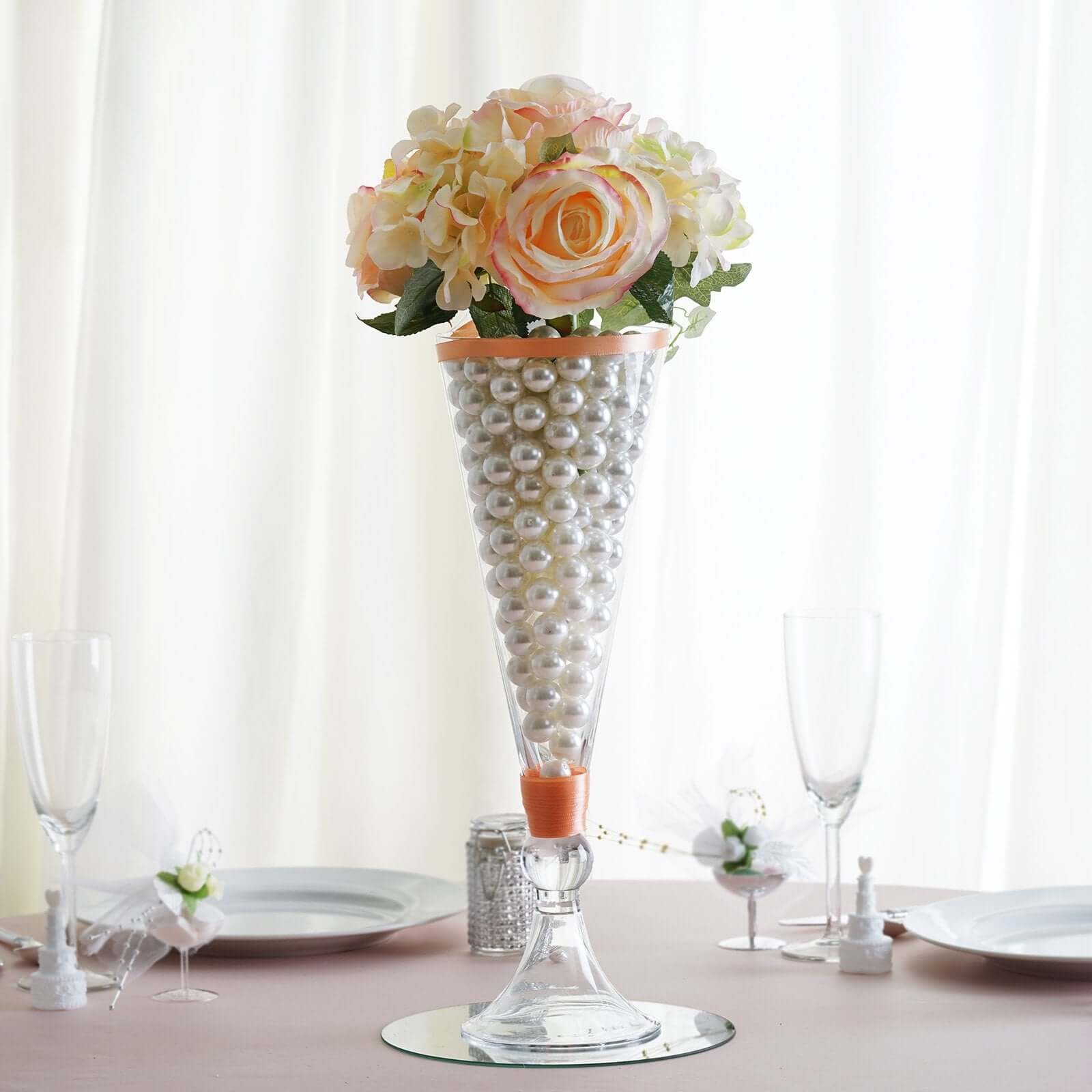 4-Pack Glass Trumpet Vases Reversible Crystal Ball Design Clear - Stylish Floral Table Centerpieces 14"