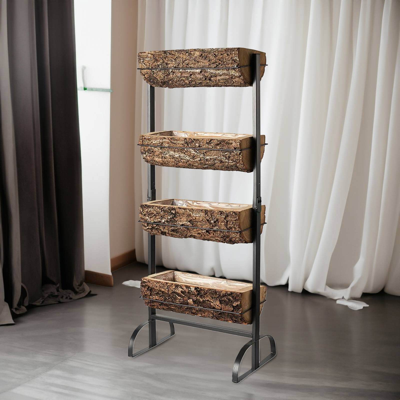 | Quantity: 4-Tier Wood Planters w/Metal Rack |