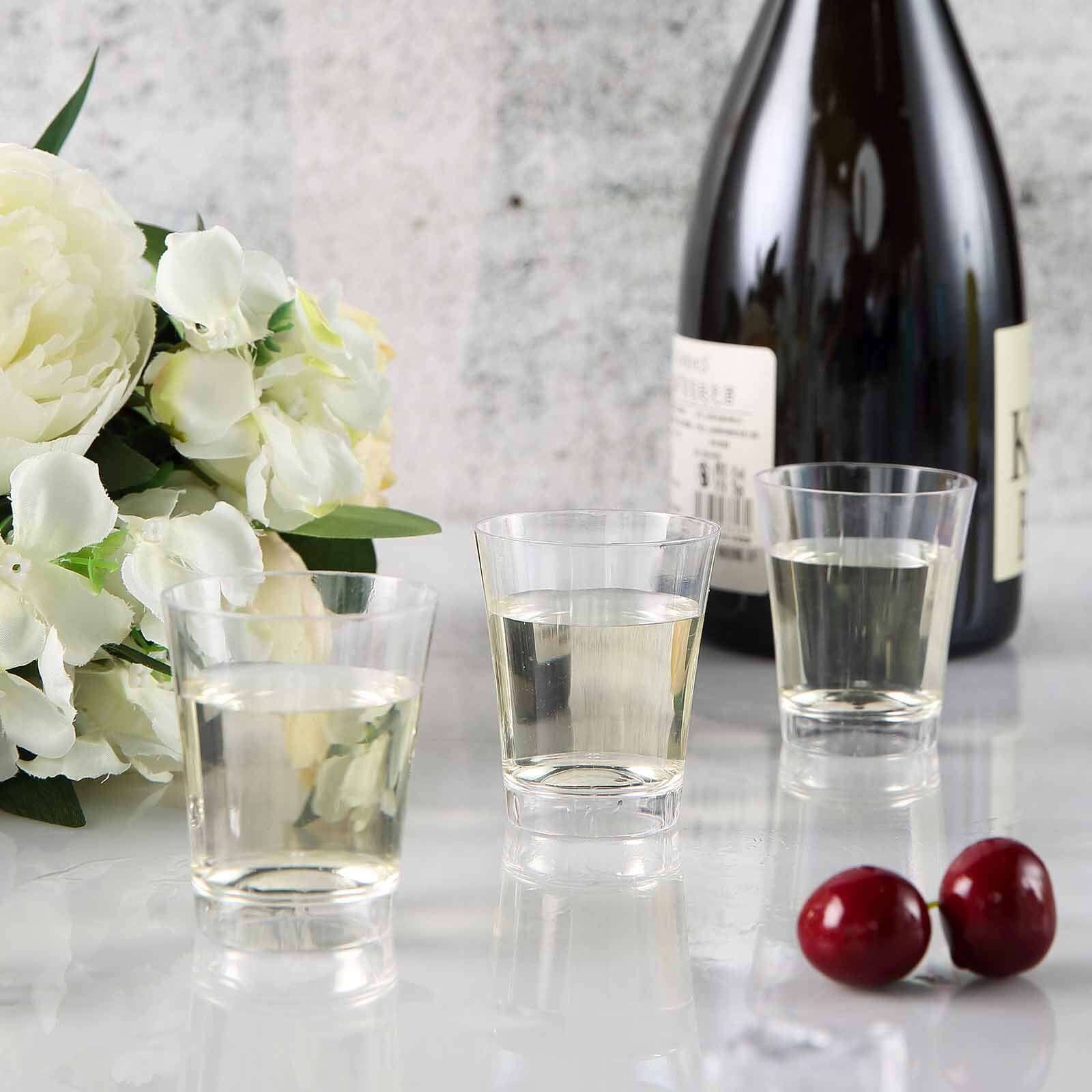 The crystal clear plastic mimics real glass and makes your desserts and drinks look temptingly delicious. Unlike glass. these plastic glasses wont shatter when dropped. this attribute make them an ideal stemware to be used for family and children functions. With the elegance of upscale glass and cost-effectiveness of plastic. these Shot glasses are perfect for weddings. bars. casual restaurants. catering events. cocktails parties. clubs. and event for home use. With our Disposable Shot Glasses. cleaning up time is a breeze!