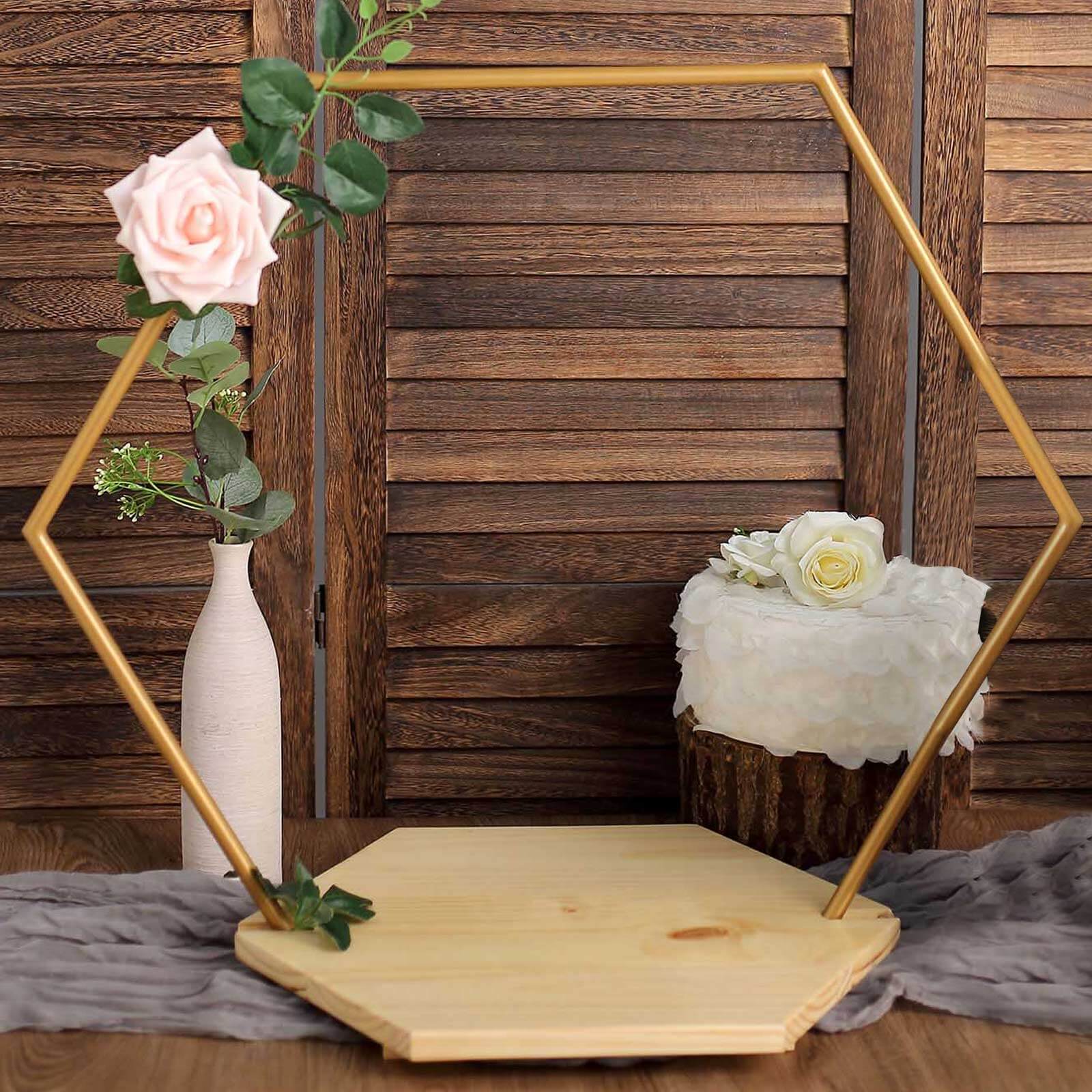 | Style: Hexagon Metal Hoop Cake Stand With Wooden Base |