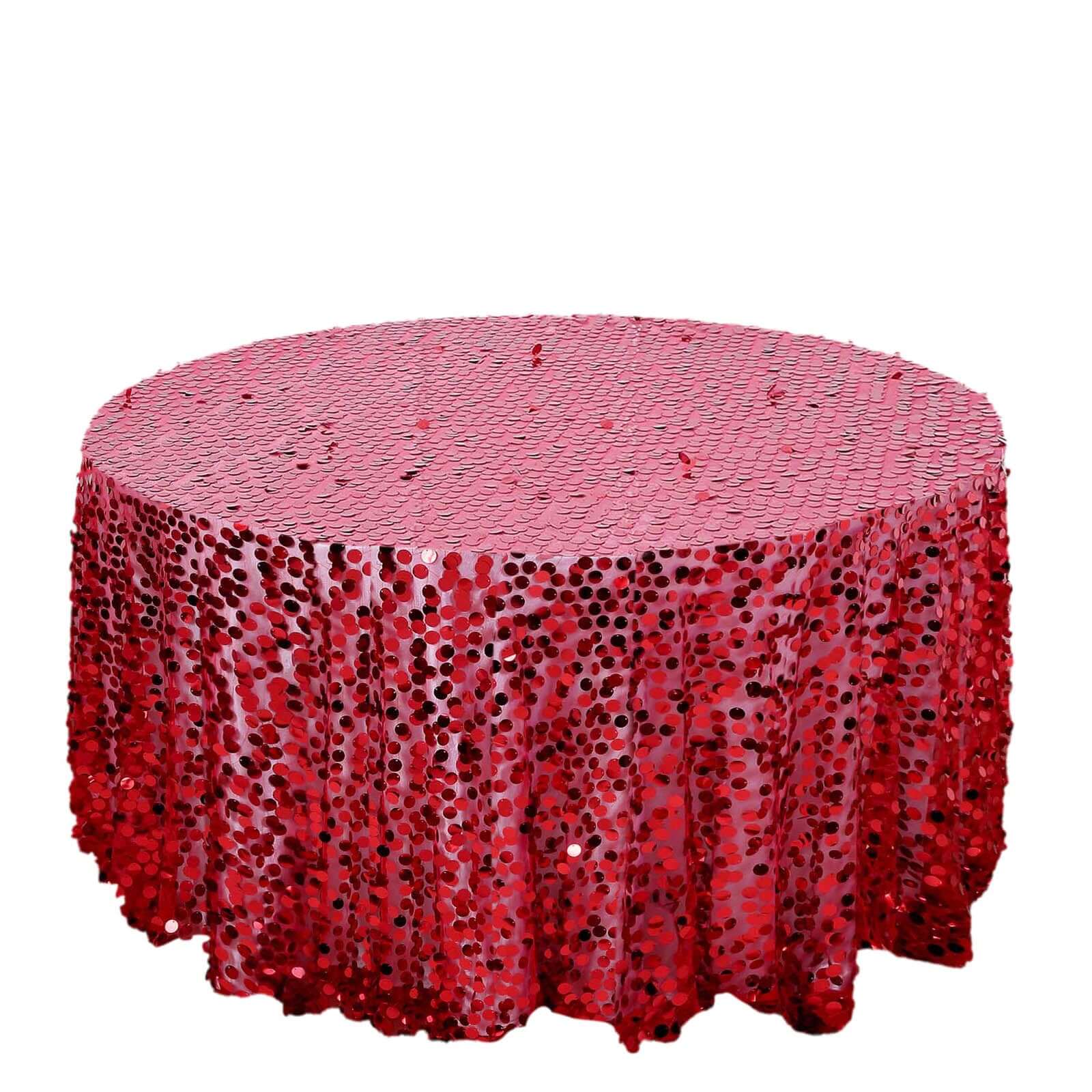 Sequin 120" Round Tablecloth Red - Seamless Big Payette Design Table Cover